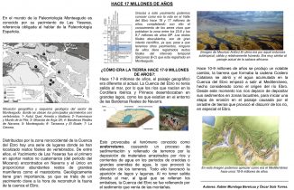 Como primera actuación se ha configurado un itinerario interpretativo de 1,5 km de distancia, que permite poder ser recorrido sin ninguna complejidad y donde el visitante podrá conocer gracias a dos paneles interpretativos cómo era este territorio hace 19 millones y el tipo de animales que lo ocupaba. El sendero además está pensado para que el visitante pueda apreciar el frente de cantera utilizado en la primera mitad del S.XX (1900-1950), y que deparó la aparición de algunos de estos fósiles. Su recorrido, además, permitirá contemplar una de las mejores vistas que existen desde Monteagudo, desde la que podremos apreciar buena parte del valle del Queiles y del Ebro. El sendero está balizado para señalizar su recorrido. Así mismo cuenta con una zona de aparcamiento para vehículos.