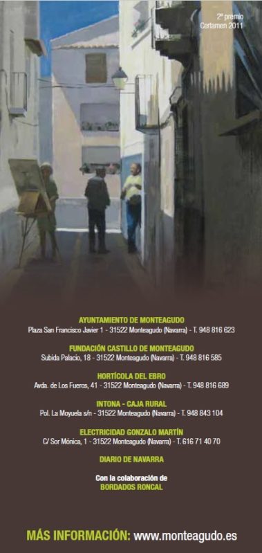 9.- Las dos primeras obras premiadas quedaran en poder del Ayuntamiento y de la Fundación Castillo de Monteagudo, según su convenio; y las tres siguientes en poder de los patrocinadores respectivos: 3º Hortícola del Ebro-D´Auci; 4º Caja Rural – Intona: 5º Electricidad Gonzalo Martín.