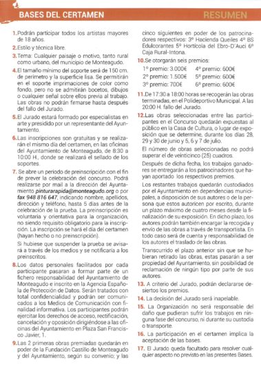 3.- Tema: Cualquier paisaje o motivo, tanto rural como urbano, del municipio de Monteagudo.