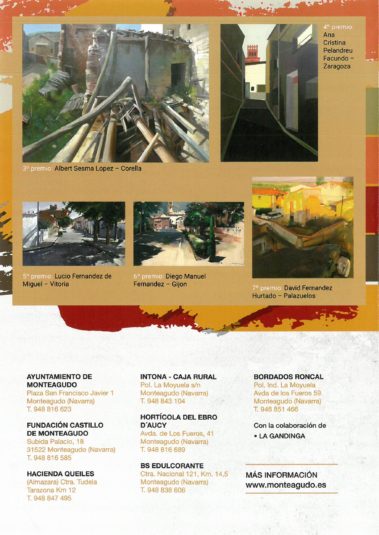 9.- Las dos primeras obras premiadas quedaran en poder de la Fundación Castillo de Monteagudo y del Ayuntamiento, según su convenio; y las cuatro siguientes en poder de los patrocinadores respectivos: 3º Hacienda Queiles 4º BS Edulcorantes. 5º Hortícola del Ebro-D´Auci 6º Caja Rural – Intona.